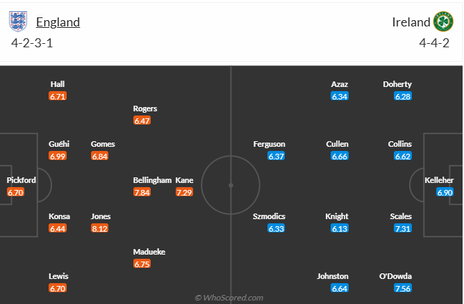 Lịch sử đối đầu đang hoàn toàn nghiêng hẳn về phía của đội tuyển Anh khi họ bất bại trong cả 5 làn gặp Ireland gần nhất trên mọi đấu trường. Ở lần gặp lại tới với phong độ ấn tượng cùng phong độ đang lên rất cao, Anh sẽ tiếp tục có được một chiến thắng nữa trước Ireland.