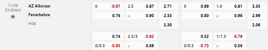 Soi kèo châu Á AZ Alkmaar vs Fenerbahce: 0.97*0*0.76