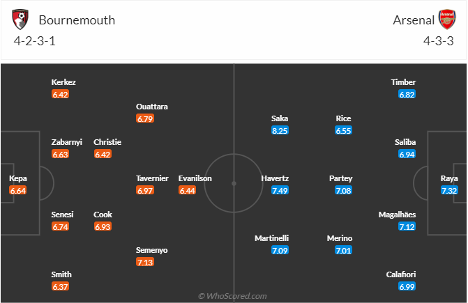 Tỉ lệ kèo Bournemouth vs Arsenal