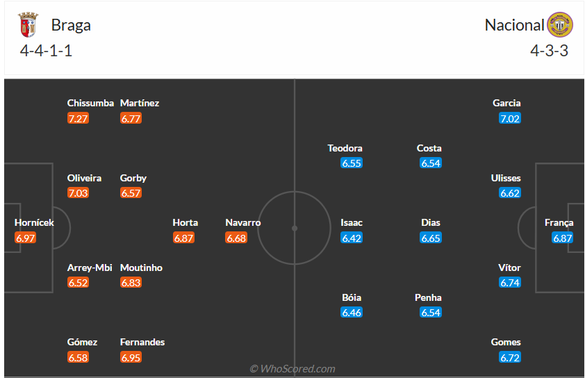 Braga là đội bóng khá của Bồ Đào Nha, họ thường xuyên có mặt trong top 4 đội mạnh nhất và hiện tại đội bóng này cũng đang đứng thứ tư trên bảng xếp hạng. Phong độ của thầy trò HLV Carlos Carvalhal thời gian gần đây là rất tốt khi thắng 5, hòa 1 trong 6 vòng đấu gần nhất. Với phong độ như hiện tại thì Braga hoàn toàn có thể nghĩ đến một vị trí cao hơn nữa trên bảng xếp hạng và họ cần tiếp tục giành chiến thắng để thực hiện mục tiêu đó. Trận đấu với Nacional ở vòng 23 không phải trận đấu khó khăn bởi Braga có chất lượng đội hình tốt hơn nhiều, khả năng cao đội bóng chủ nhà sẽ không gặp nhiều trở ngại để có 3 điểm trận này.