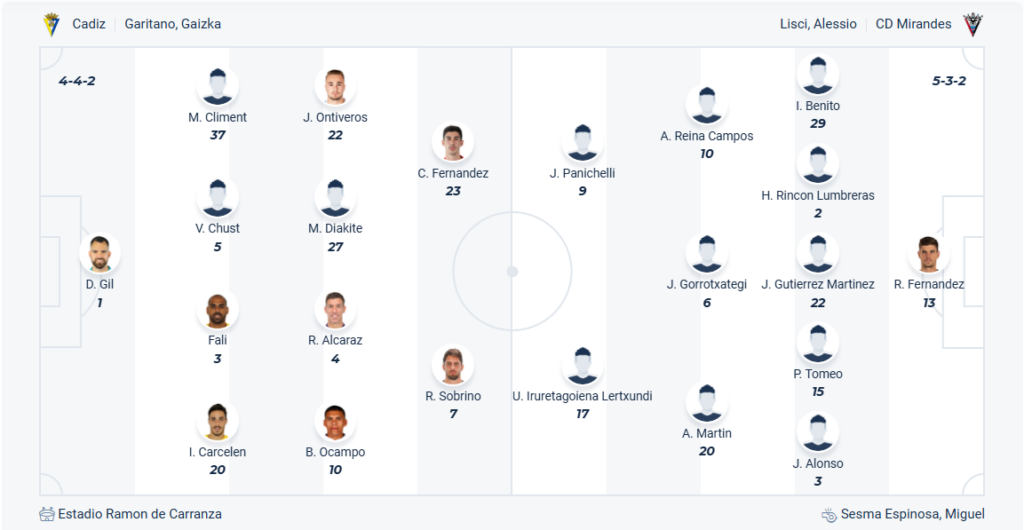 Mirandes không phải đội bóng mạnh của giải hạng nhì Tây Ban Nha, mùa giải trước họ chỉ cán đích ở vị trí thứ 18. Tuy nhiên mùa giải năm nay đội bóng của HLV Alessio Lisci đang thể hiện một bộ mặt khác, họ chơi tốt và đang đứng thứ tư trên bảng xếp hạng. Nếu làm tốt trong phần còn lại của mùa giải thì cơ hội thăng hạng của Mirandes là hoàn toàn có thể, tuy nhiên họ lại đang chơi không ổn định thời gian gần đây khi để thua 2/6 vòng gần nhất. Mirandes cần tiếp tục giành chiến thắng sau khi có 3 điểm ở vòng đấu trước tuy nhiên chuyến làm khách trên sân của Cadiz được đánh giá không hề dễ dàng. Nhiều khả năng Mirandes sẽ không thể có điểm ra về.