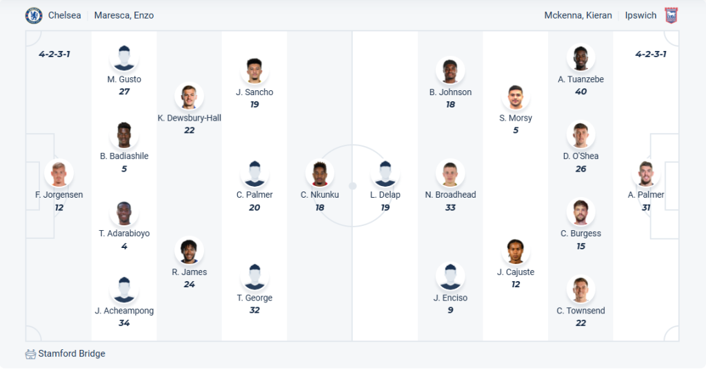 Chelsea vẫn đang đứng thứ tư nhưng khoảng cách giữa họ và các đội đứng sau rất nhỏ và có thể mất vị trí này bất cứ lúc nào nếu không thắng ở các trận đấu của mình. Chính vì vậy sau khi bị cầm hòa vòng đấu trước thì đội bóng của HLV Enzo Maresca cần giành chiến thắng ở vòng đấu này để duy trì vị trí trong top 4 của mình. Đây không phải nhiệm vụ khó khăn dù Chelsea đang đá rất bất ổn bởi Ipswich gần như đã chắc chắn xuống hạng. Nhiều khả năng đội bóng chủ nhà sẽ giành chiến thắng với tỉ số cách biệt.