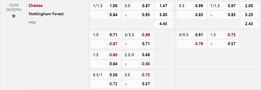 Soi kèo châu Á Chelsea vs Nottingham Forest