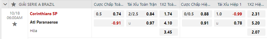 Soi kèo châu Á Corinthians vs Athletico Paranaense