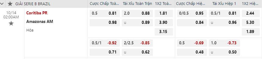 Soi kèo hiệp 1 Coritiba vs Amazonas