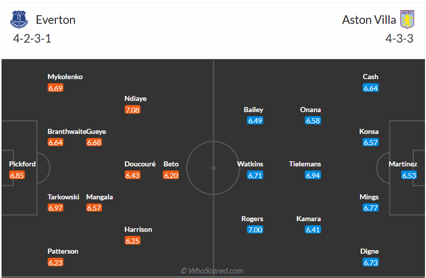 Dự đoán tỉ số trận đấu: Everton 0 – 1 Aston Villa (Chọn Aston Villa và Xỉu trận)