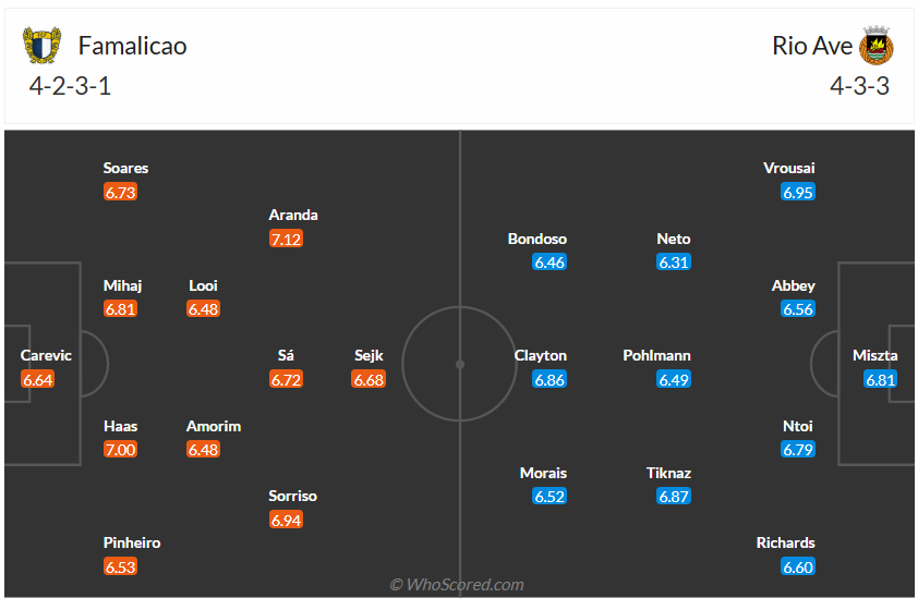 Rio Ave đang có thứ hạng tiến bộ hơn đôi chút so với mùa trước (thứ 10 so với thứ 11). Phong độ thời gian gần đây tạm chấp nhận được (thắng 2, hòa 3, thua 1 trong 6 vòng gần đây) nhưng nếu muốn có vị trí cao hơn thì các cầu thủ Rio Ave cần chơi tốt hơn, họ cần tiếp tục giành chiến thắng sau khi có được điều đó ở vòng đấu trước. Tuy nhiên chuyến làm khách trên sân của Famalicao ở vòng đấu thứ 25 được dự đoán vô cùng khó khăn, nhiều khả năng Rio Ave sẽ không thể có điểm ra về.