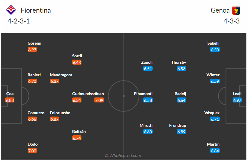Fiorentina đang đứng thứ 6 trên bảng xếp hạng, nếu không rơi vào chuỗi trận liên tiếp không thắng thì có lẽ đội bóng của HLV Raffaele Palladino còn có vị trí cao hơn nữa. Họ mới chấm dứt chuỗi trận đáng thất vọng kể trên bằng chiến thắng ở vòng đấu trước và các cầu thủ Fiorentina sẽ muốn tiếp tục giành chiến thắng để cải thiện thứ hạng của mình. Tiếp đón một Genoa được đánh giá yếu hơn không phải trận đấu quá khó với Fiorentina và nhiều khả năng đội bóng chủ nhà sẽ có được điều mình cần.
