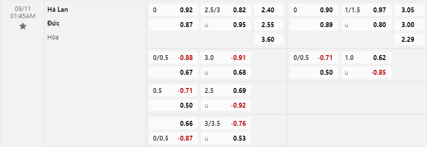 Soi kèo hiệp 1 Hà Lan vs Đức