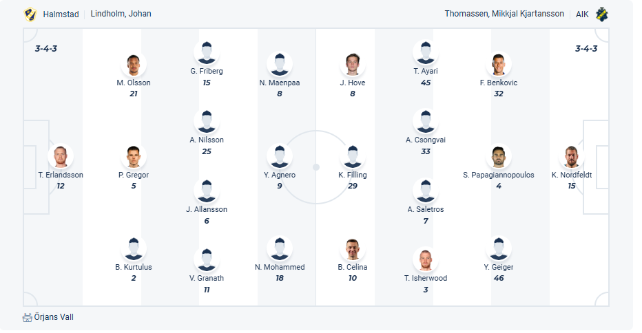 AIK là đội bóng mạnh của giải vô địch Thụy Điển, họ đứng thứ 3 mùa giải trước. Mùa giải năm nay đội bóng của HLV Mikkjal Thomassen cũng đang đứng thứ 3 và chỉ kém đội đầu bảng 2 điểm, cơ hội để cạnh tranh chức vô địch với AIK là rất sáng và điều họ cần làm vào lúc này là tiếp tục giành chiến thắng để cạnh tranh cho ngôi đầu. Vậy nên khi đến làm khách trên sân của Halmstad thì 3 điểm là điều duy nhất các cầu thủ AIK hướng đến, trước đối thủ yếu hơn và đang chơi không tốt thì nhiều khả năng họ sẽ ra về với 3 điểm trọn vẹn.