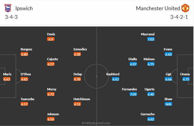 Đội hình dự kiến Ipswich Town vs Manchester United