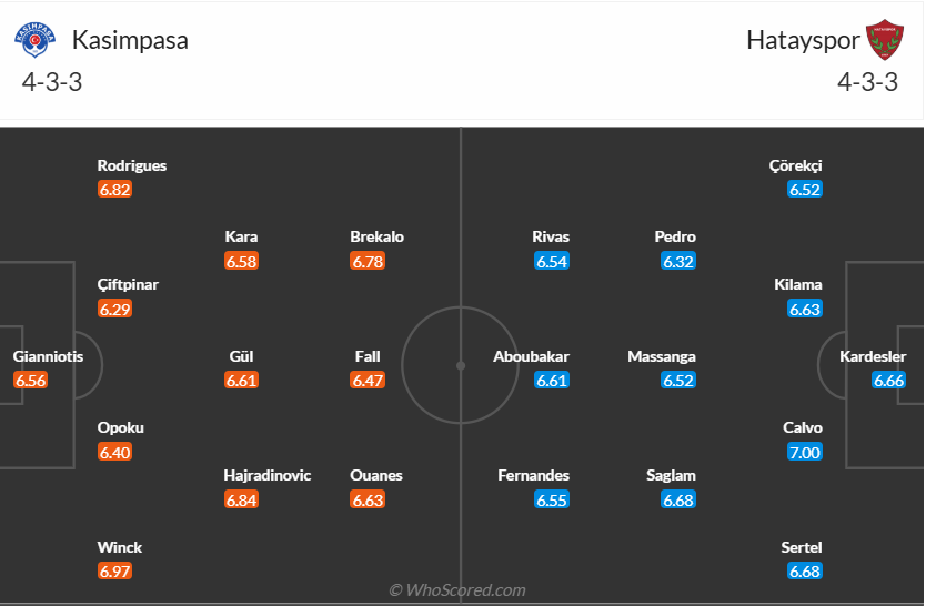 Kasimpasa đứng thứ 5 mùa giải trước và có vé dự cup Châu Âu, tuy nhiên mùa bóng năm nay mọi thứ đang diễn ra rất tệ với đội bóng này khi họ đang đứng thứ 13 trên bảng xếp hạng. Chuỗi trận không tốt với chỉ 1 chiến thắng trong 6 vòng gần nhất là nguyên nhân khiến thầy trò HLV Hakan Keleş không có được vị trí cao và họ cần chơi tốt trong các trận sắp tới để có vị trí tốt hơn. Chính vì vậy khi đón tiếp Hatayspor trên sân nhà thì 3 điểm là điều duy nhất mà các cầu thủ Kasimpasa hướng đến. Trước đối thủ đang lặn ngụp ở cuối bảng thì nhiều khả năng Kasimpasa sẽ có 3 điểm trọn vẹn.