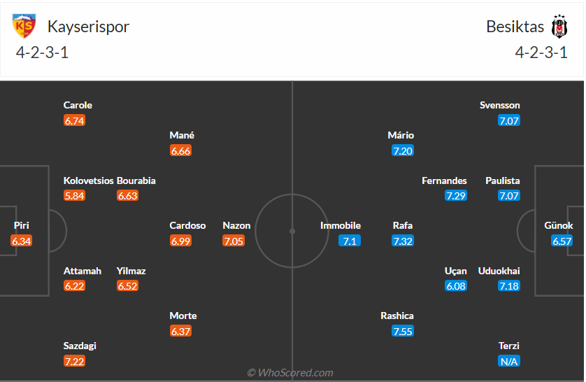 Besiktas vẫn luôn là đội bóng mạnh và giàu truyền thống của Thổ Nhĩ Kỳ, mùa trước chỉ đứng thứ 6 là thành tích rất tệ của thầy trò HLV Giovanni van Bronckhorst. Mùa bóng năm nay họ quyết tâm làm tốt hơn và đang có khởi đầu rất ổn với 4 thắng, 1 hòa sau 5 vòng đấu. Thành tích tốt như vậy nhưng Besiktas chỉ đang đứng thứ tư nên việc cạnh tranh cho ngôi đầu bảng là rất gay gắt, các cầu thủ Besiktas cần tiếp tục giành chiến thắng để có thể cạnh tranh với các đối thủ rất mạnh. Đến làm khách trên sân của Kayserispor không phải trận đấu khó khăn với Besiktas và nhiều khả năng họ sẽ có 3 điểm ra về.