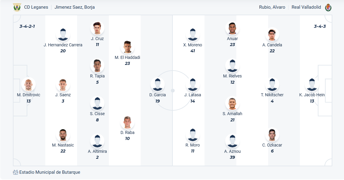 Valladolid cũng mới thăng hạng như Leganes nhưng họ còn thể hiện một bộ mặt đáng thất vọng hơn nhiều, đội bóng của HLV Álvaro Rubio thể hiện rõ sự yếu kém so với phần còn lại khi mới có 16 điểm và đã chắc chắn xuống hạng từ vài vòng đấu trước. Họ thua liên tiếp ở những vòng đấu vừa qua và với tinh thần các cầu thủ không tốt thì sẽ không có gì ngạc nhiên nếu Valladolid tiếp tục thua trận đấu cuối cùng của mùa giải khi đến làm khách trên sân của đội bóng đang rất cần thắng Leganes.