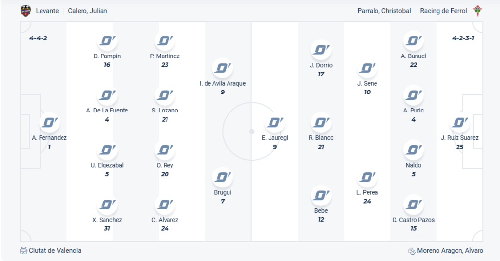 Levante đàng đứng thứ 5 trên bảng xếp hạng, so với vị trí thứ 8 mùa trước đội bóng của HLV Julián Calero đã chơi tiến bộ hơn và với vị trí này họ hoàn toàn có thể hy vọng vào một chiếc vé thăng hạng. Để làm được điều đó thì Levante cần chơi tốt hơn nữa và phải tiếp tục giành chiến thắng sau khi có 2 chiến thắng liên tiếp gần đây. Vậy nên 3 điểm là điều mà các cầu thủ Levante hướng đến khi tiếp đón Racing Ferrol trên nhà, trước đối thủ đang đứng trong nhóm cuối bảng thì nhiều khả năng Levante sẽ có 3 điểm trọn vẹn.