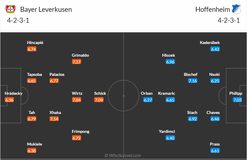 Leverkusen đã đứt mạch thắng sau khi để hòa ở vòng đấu trước, trận hòa đó khiến họ kém đội đầu bảng Bayern 6 điểm. Cơ hội bảo vệ chức vô địch của thầy trò Xabi Alonso là vẫn còn, điều họ cần làm vào lúc này là tiếp tục giành chiến thắng để khoảng cách điểm không bị nới rộng thêm. Các cầu thủ Leverkusen có cơ hội rất tốt để làm việc này khi chỉ phải tiếp đón đội bóng yếu Hoffenheim ở vòng đấu thứ 20. Nhiều khả năng với chất lượng đội hình tốt hơn thì Leverkusen sẽ không gặp nhiều khó khăn để có 3 điểm trận này.