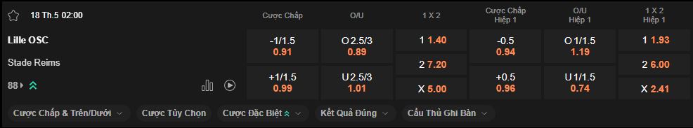 Lille 3-1 Reims (Chọn Lille Tài trận).
