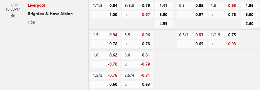 Soi kèo hiệp 1 Liverpool vs Brighton: 0.83*0.75*0.65