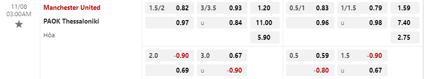 Soi kèo hiệp 1 Manchester United vs PAOK: 0.80*0.5*0.59