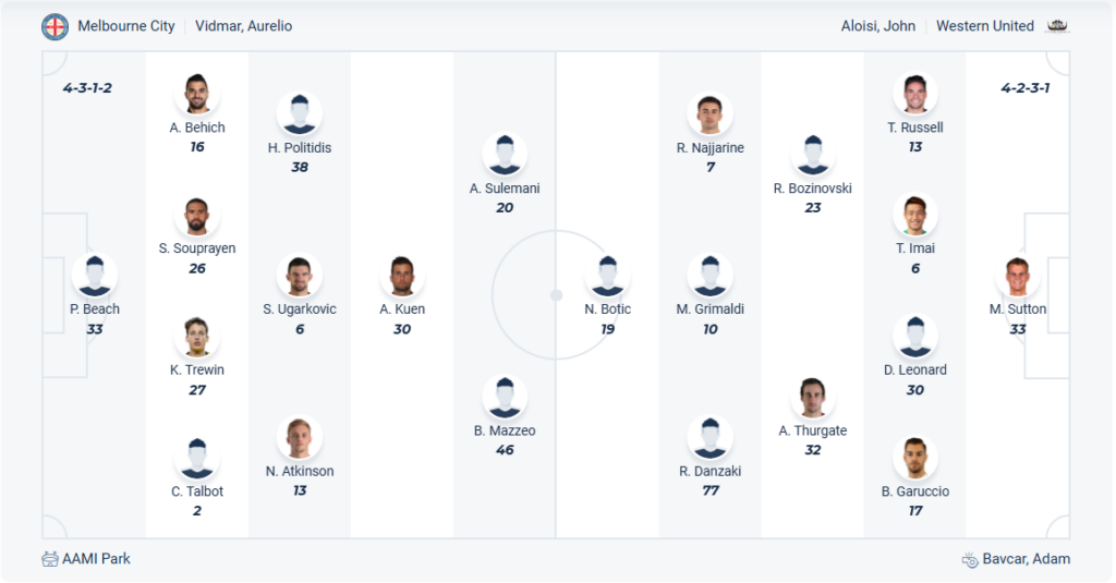 Melbourne City đang đứng thứ tư tren bảng xếp hạng, so với vị trí thứ 6 mùa trước thì rõ ràng đội bóng của HLV Aurelio Vidmar đang làm tốt hơn. Tuy nhiên nếu đội bóng này chơi tốt hơn ở những vòng đấu vừa qua thì vị trí của họ còn tốt hơn nữa, việc chỉ thắng 2/6 vòng gần nhất khiến các cầu thủ Melbourne City không thể cải thiện thứ hạng của mình. Chính vì vậy Melbourne City quyết tâm giành chiến thắng ở vòng đấu này trước đối thủ Western để bám đuổi các đội phía trên. Nếu chơi đúng với khả năng thì 3 điểm là điều không khó với đội bóng chủ nhà.