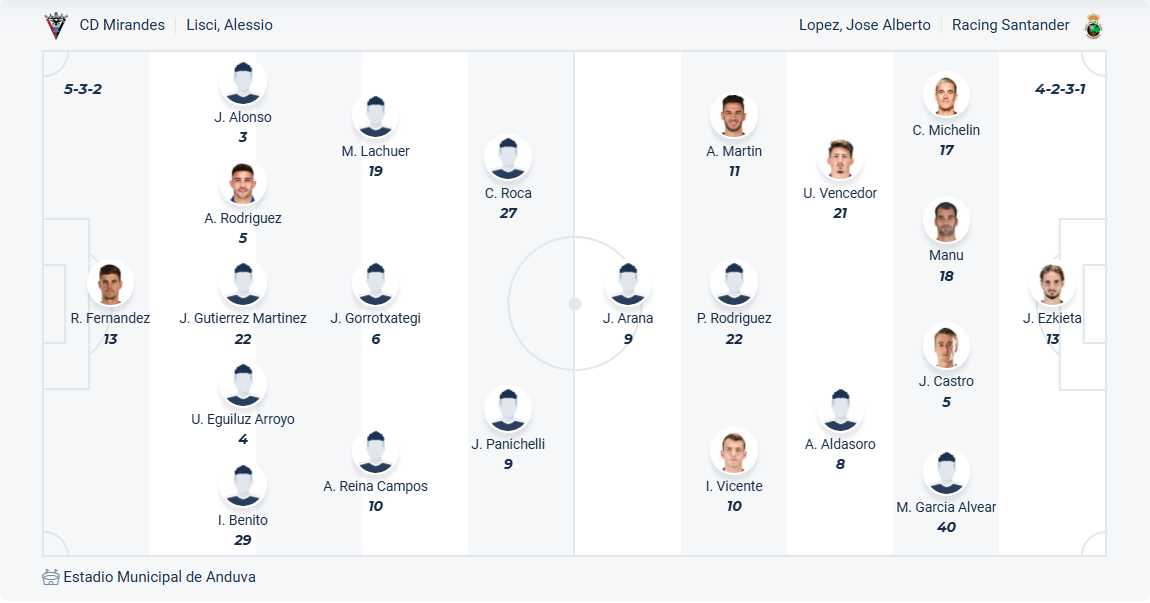Mirandes đang đứng thứ 3 trên bảng xếp hạng, so với vị trí thứ 18 mùa trước thì rõ ràng đội bóng của HLV Alessio Lisci cho thấy sự tiến bộ vượt bậc, từ vị trí có nguy cơ xuống hạng thì giờ đây đội bóng này đang có rất nhiều cơ hội lên chơi ở La Liga mùa tới. Mirandes chỉ kém 2 đội đầu bảng 1 điểm nên nếu thắng trước đội đứng thứ 2 Racing Santander ở vòng đấu thứ 32 thì họ chắc chắn sẽ có tên trong 2 vị trí dẫn đầu. Trận đấu sẽ không dễ dàng nhưng nhiều khả năng phong độ ổn định thời gian gần đây sẽ giúp Mirandes có 3 điểm trọn vẹn.