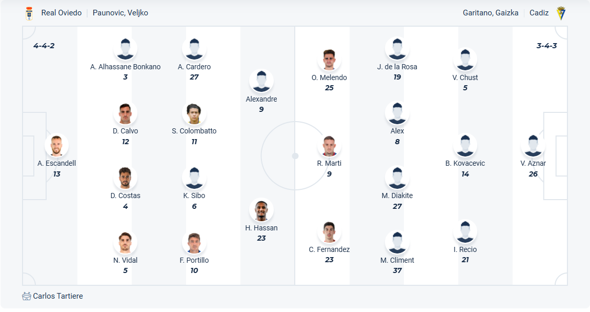 Cadiz là đội bóng phải xuống hạng từ La Liga mùa trước, hiển nhiên đội bóng của HLV Gaizka Garitano nhanh chóng giành vé thăng hạng nhưng mọi việc không như họ mong muốn. Các cầu thủ Cadiz chơi không tốt khi chỉ đứng thứ 11 ở thời điểm mùa giải chỉ còn 1 vòng đấu và đương nhiên không thể thăng hạng. Với vị trí như hiện tại thì Cadiz không còn mục tiêu nào trong trận đấu còn lại nên hiển nhiên tinh thần của họ không thể tốt bằng Oviedo, đội vẫn còn động lực chiến đấu. Đây sẽ là điều khiến Cadiz không có kết quả tốt trận này.