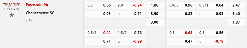 Tỷ lệ kèo Paysandu vs Chapecoense