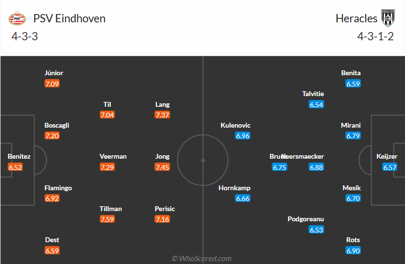 Dự đoán tỉ số trận đấu: PSV 4 – 2 Heracles (Chọn Heracles và Tài trận).
