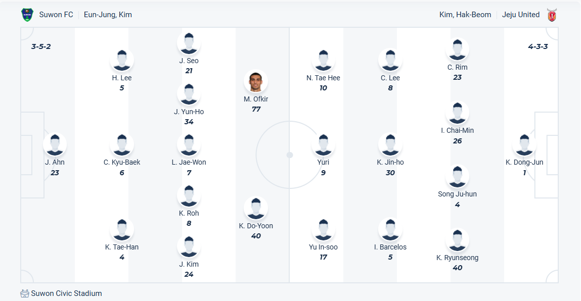 Vòng 16 giải vô địch Hàn Quốc, Suwon sẽ tiếp Jeju trên sân nhà với mục tiêu giành chiến thắng để cải thiện thứ hạng của mình. Đây không phải trận đấu quá khó khăn nếu đội chủ nhà tận dụng tốt các cơ hội của mình.