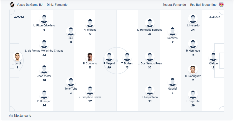 Khác với Vasco da Gama, Bragantino đang chơi rất tiến bộ mùa giải này. Từ vị trí thứ 16 mùa trước đội bóng của HLV Fernando Seabra khởi đầu rất ổn và đứng thứ tư sau 10 vòng đấu ở hiện tại, phong độ rất ổn của các cầu thủ Bragantino giúp họ có quyền mơ đến một kết quả tốt vào cuối mùa. Muốn vậy họ cần giành chiến thắng khi đến làm khách trên sân của Vasco da Gama ở vòng 11, trước đối thủ đang không có phong độ tốt thì khả năng Bragantino sẽ biết cách tận dụng cơ hội để ra về với 3 điểm trọn vẹn.