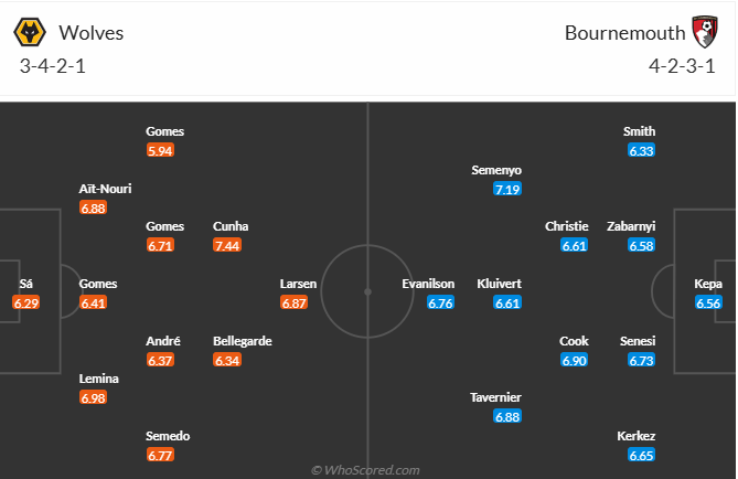 Wolves đã thắng liên tiếp 2 vòng đấu gần đây, cũng là 2 chiến thắng đầu tiên của họ ở mùa giải này. Nhờ 2 chiến thắng đó mà đội bóng của HLV Gary O’Neil đã thoát khỏi vị trí cuối bảng và leo lên vị trí thứ 17, điều này giúp tinh thần của các cầu thủ Wolves lên rất cao và họ muốn tiếp tục chơi tốt để có vị trí cao hơn nữa trên bảng xếp hạng. Đối thủ của Wolves ở vòng 13 này là Bournemouth, đội đang không có phong độ tốt nên cơ hội giành chiến thắng của Wolves là không hề ít, nhiều khả năng đội bóng chủ nhà sẽ tiếp tục có trận đấu tốt và giành 3 điểm trọn vẹn.